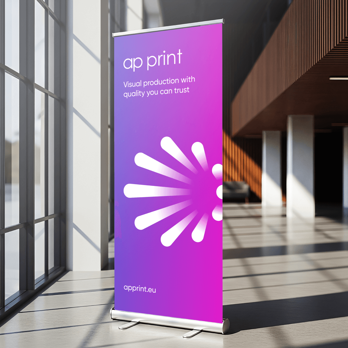 Roll-ups are one of the most popular and versatile display systems. They are lightweight, easy to transport and can be set up within seconds, making them ideal for trade fairs, presentations, pop-up events and in-store promotions.